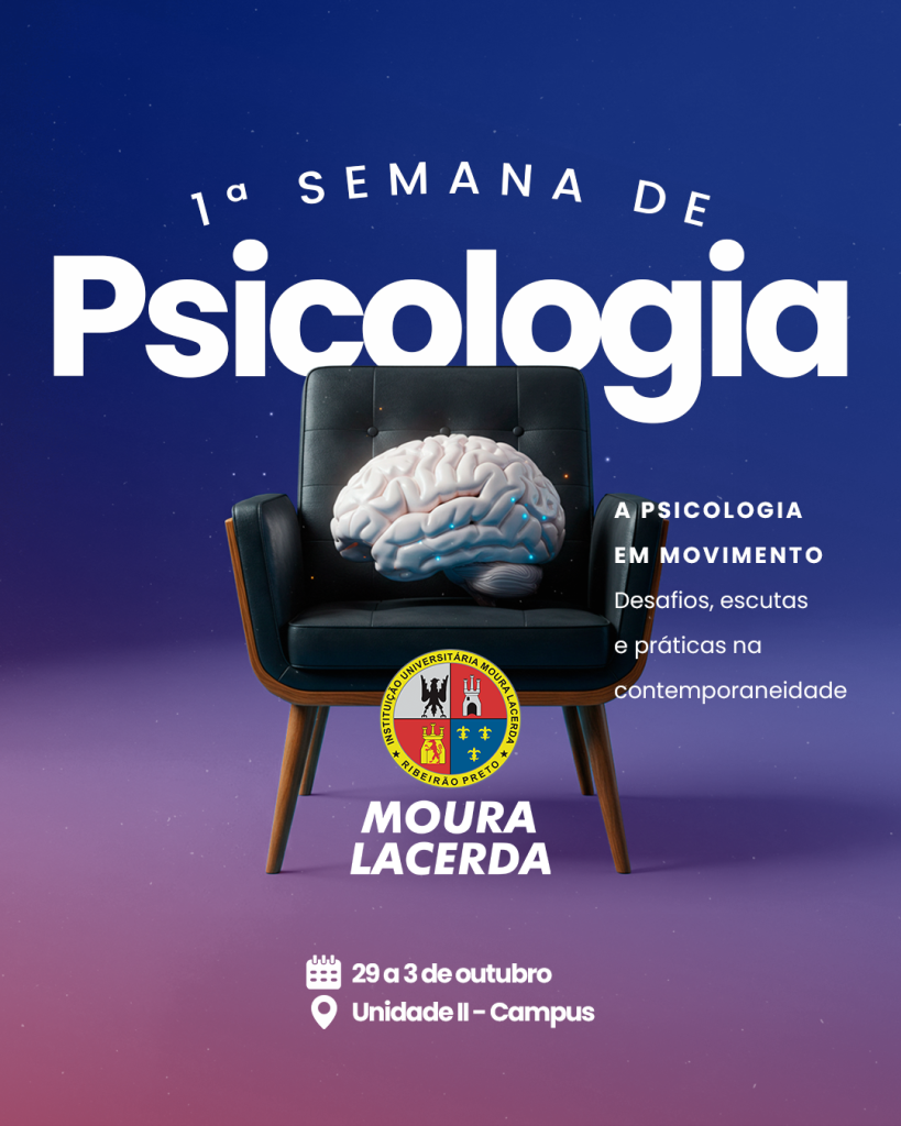 A 1ª Semana de Psicologia aborda clínica, saúde mental, educação e trabalho. Reúne especialistas e mediadores em palestras e debates sobre desafios contemporâneos, vulnerabilidades, resiliência e transformações sociais. Evento acontece de 29/09 a 03/10.